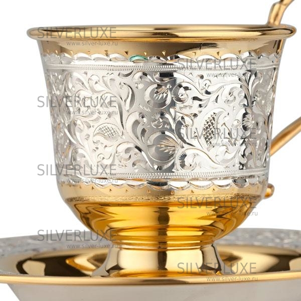 Серебро 875 пробы. Покрыта позолотой 999 пробы.