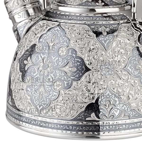 Серебро 875 пробы. Чайник можно использовать на электроплите или на газовой плите с использовании рассеивателя. Гарантия высшего качества от фирменного магазина!