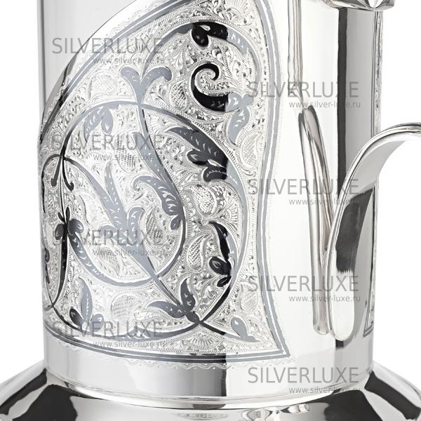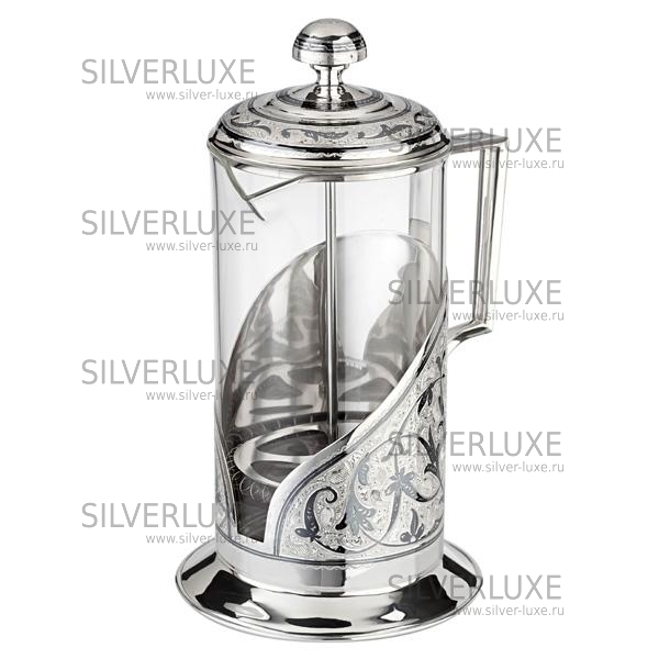 Заварочный чайник (френч-пресс), корпус из серебра 875 пробы. Со стеклянной колбой из жаропрочного стекла. Выполнено вручную кубачинскими ювелирами!