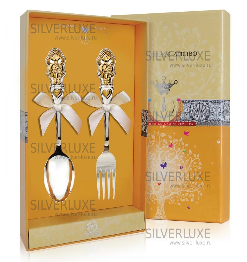 Детский набор «Девочка» с позолотой (ложка+вилка) артикул: 6309