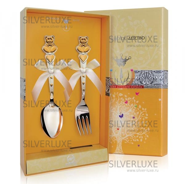 Серебро 925 пробы. Фабрика серебра "Аргента". В набор входят ложка и вилка с позолотой.