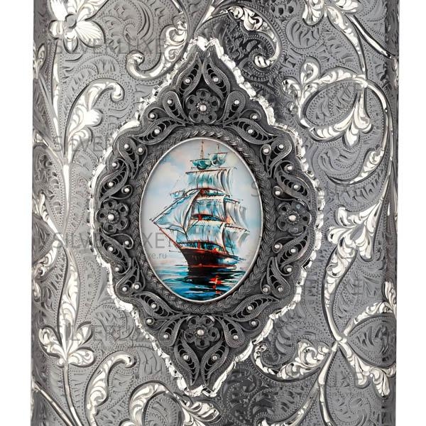 Фляга с оксидированием и филигранью «Корабль», 290 мл артикул: 4467