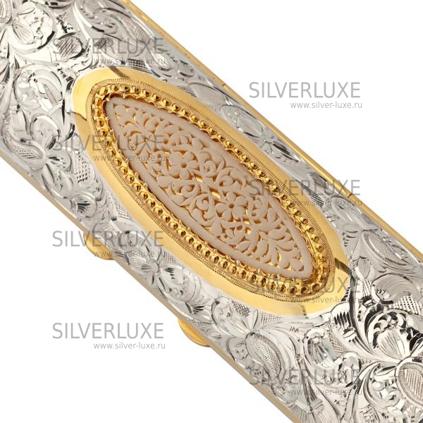 Серебро 875 пробы. С позолотой 999 пробы. Вставка-слоновая кость. Внутренняя часть обработана бархатом.