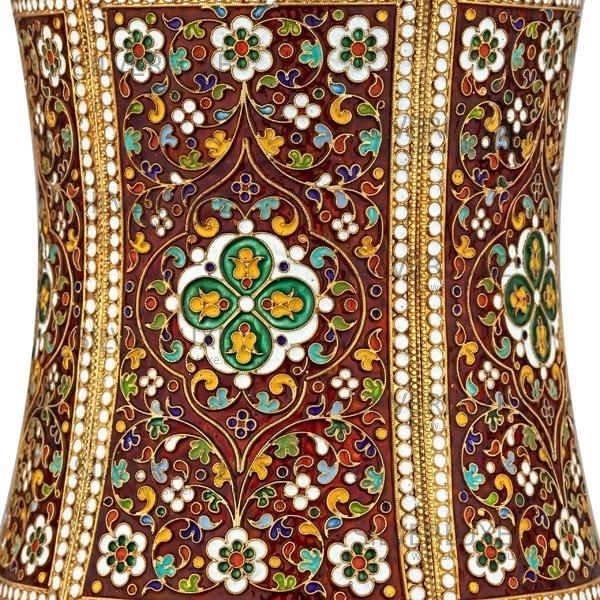 Серебро 875 пробы. С позолотой 999 пробы. Горячая эмаль "цвета граната". Роскошное изделие от кубачинских ювелиров!