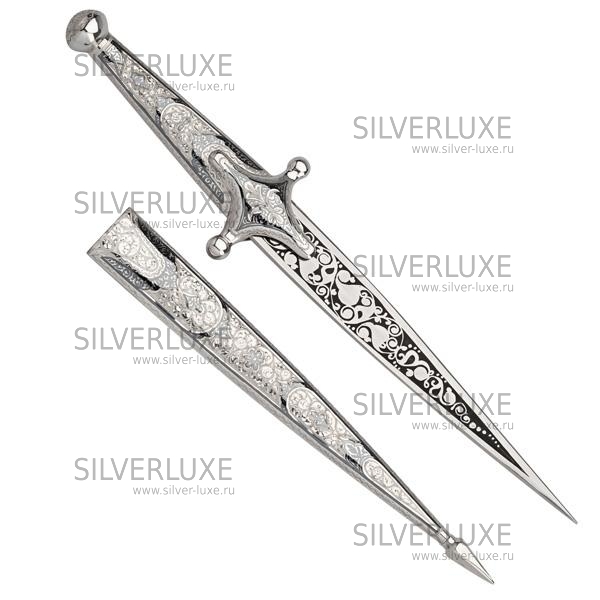 Серебро 875 пробы. Средний вес серебра в изделии 80 гр. Клинок - кизлярская сталь. Гарантия высшего качества от фирменного магазина!