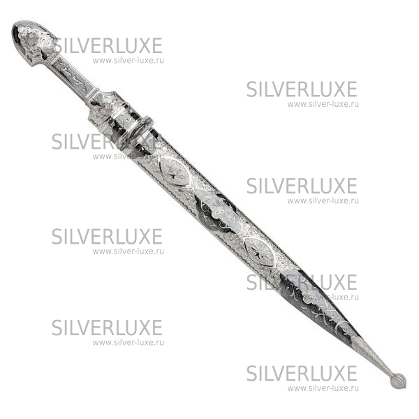 Серебро 875 пробы. Покрыт золотом 999 пробы. Клинок - дамасская сталь! Средний вес серебра в изделии 250 гр. Гарантия высшего качества от фирменного магазина!