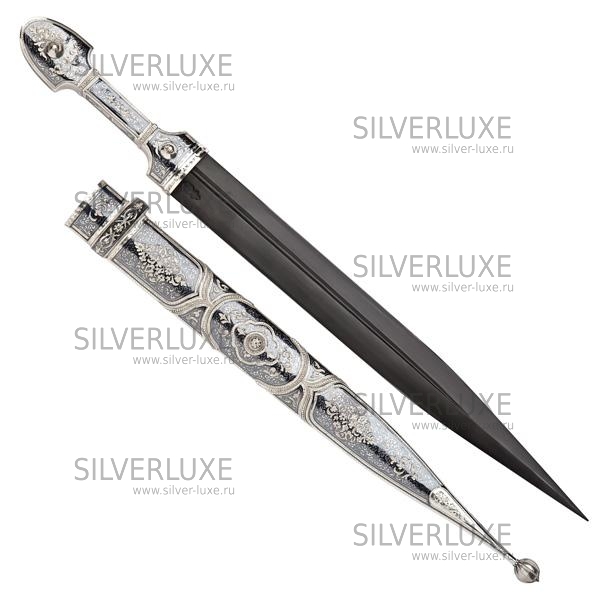 Серебро 875 пробы. Средний вес серебра в изделии 300 гр. Клинок - каленая сталь! В премиумном исполнении от кубачинских мастеров!
