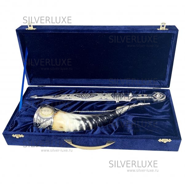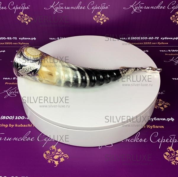 Серебро 875 пробы. Выполнено вручную мастерами Кубачи! Рог с питьевой чашей.
