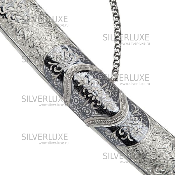 Серебро 875 пробы. Боевая сабля, клинок - дамасская сталь, с клеймом мастера! Средний вес серебра в изделии 350 гр. В премиумном исполнении от кубачинских мастеров! Гарантия высшего качества от фирменного магазина!