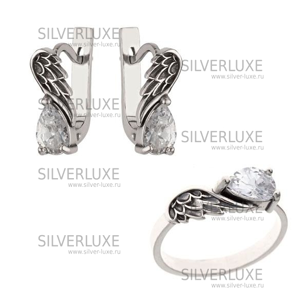 Комплект из серебра «Крылья» с белым камнем артикул: 8290