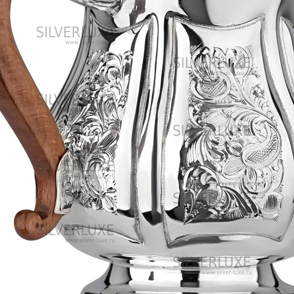 Серебро 875 пробы. Чайник с деревянной ручкой, дерево дуб. Изделие станет прекрасным и функцональным подарком!