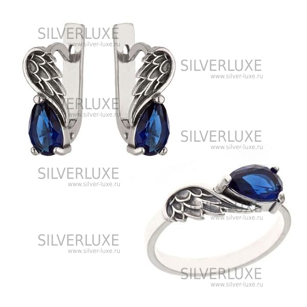Комплект из серебра «Крылья» с синим камнем артикул: 8290/3