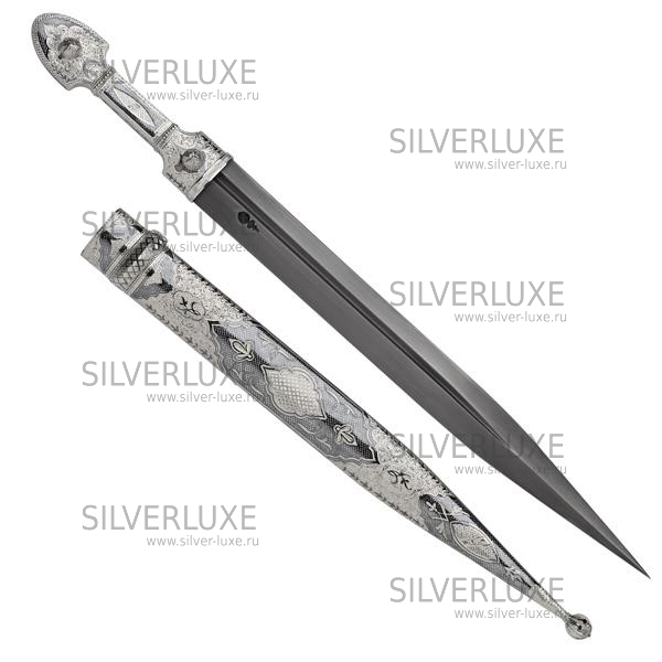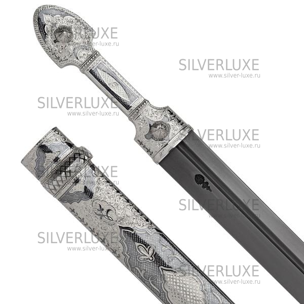 Серебро 875 пробы. Средний вес серебра в изделии 300 гр. Клинок - каленный боевой булат! По древнейшим традициям!