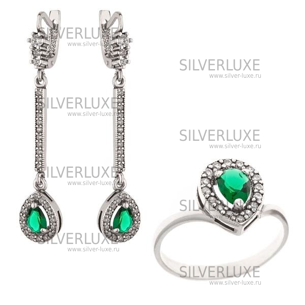 Комплект серебряный с зеленым камнем артикул: 8277