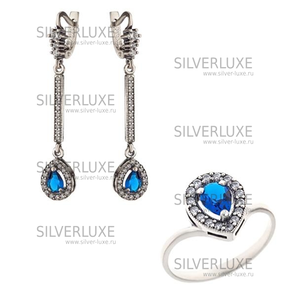 Комплект серебряный с синим камнем артикул: 6972