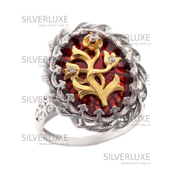Позолоченное кольцо с бордовой эмалью артикул: 6635/3