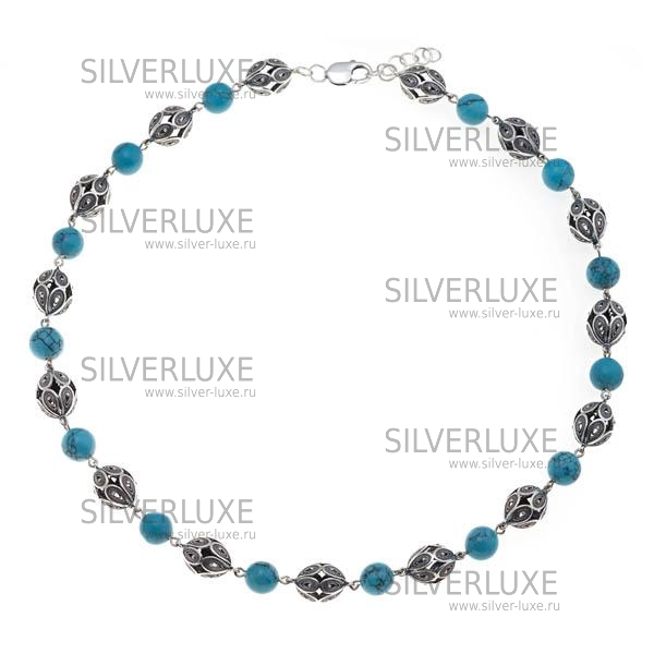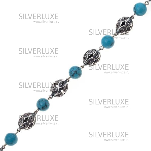 Крупные бусы серебряные с голубой бирюзой артикул: 8446