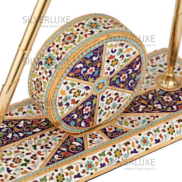 Серебро 960 пробы. Покрыт золотом 999 пробы, с горячей эмалью. Выполнен на мраморной подставке, ручки в комплекте. Прекрасный подарок руководителю или просто деловому человеку. Добавит роскошь в любой кабинет!