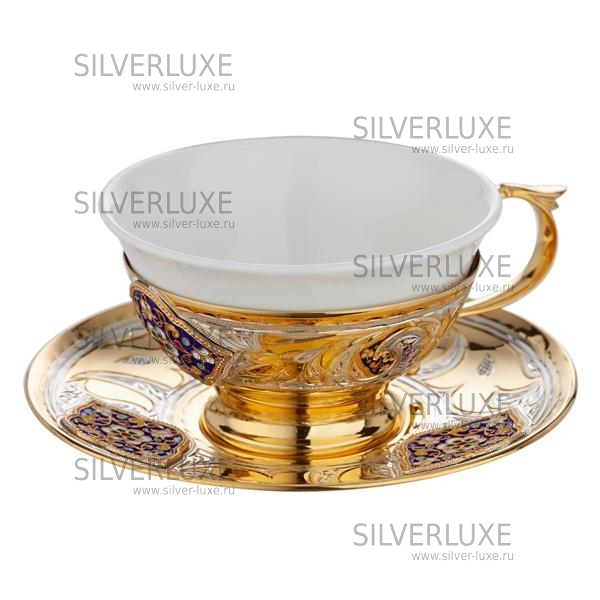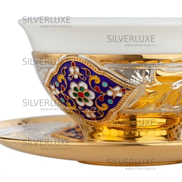 Серебро 875 пробы, покрыта позолотой 999 пробы.