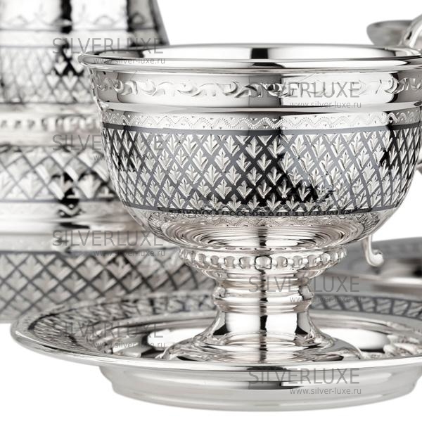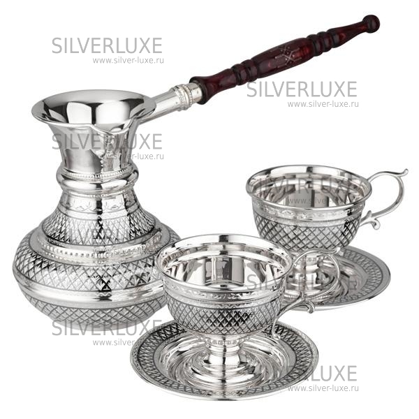 Серебро 875 пробы. В набор входят: турка, две кофейные пары. Пить из серебряной посуды не только вкусно, но и полезно!