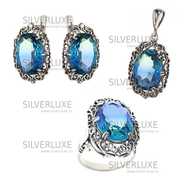 Серебро 925 пробы. Вставка - камень голубой мистик. Изделие в фирменной подарочной упаковке.