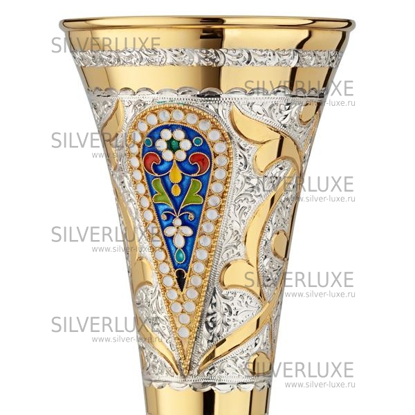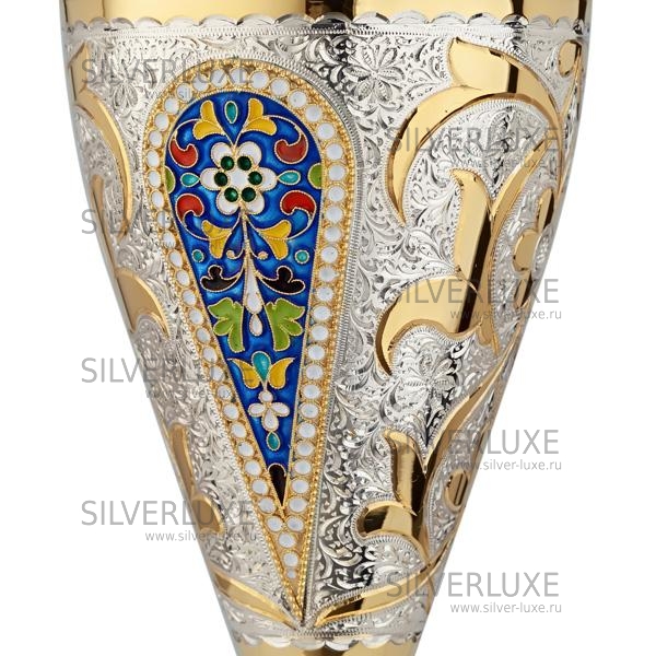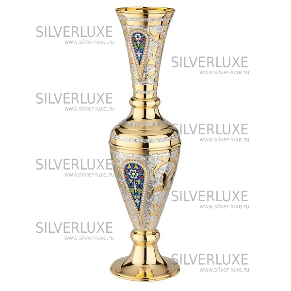 Серебро 875 пробы. Ваза покрыта позолотой 999 пробы. С горячей эмалью! Изготовлена вручную кубачинскими мастерами! По древнейшим традициям, история Кубачинского искусства насчитывает несколько веков!