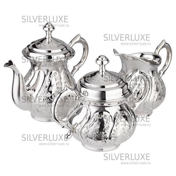 Серебро 875 пробы. В набор входят: чайник, сахарница, молочник. Гарантия высшего качества от фирменного магазина!