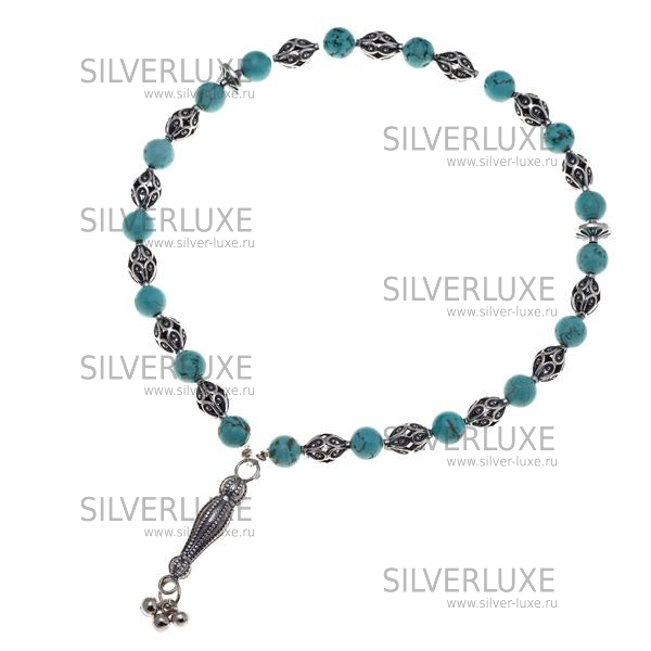 Чётки серебряные с голубой бирюзой артикул: 4519