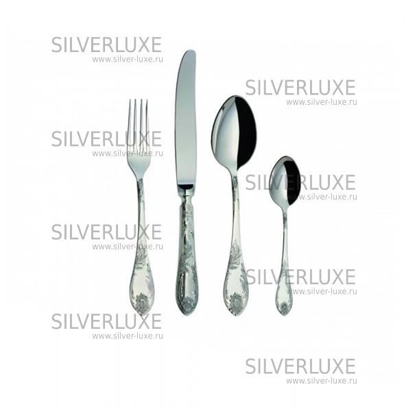 Серебро 925 пробы. ПАО "Павловский завод им.Кирова". В набор входят: ложка чайная - 1 шт., ложка столовая – 1 шт., вилка столовая – 1 шт., нож столовый – 1 шт.