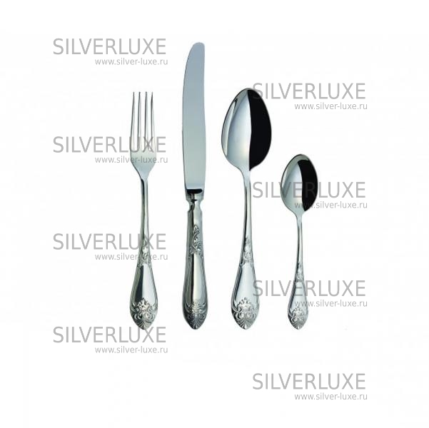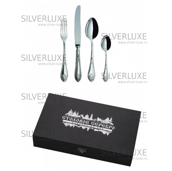 Серебро 925 пробы. ПАО "Павловский завод им.Кирова". В набор входят: ложка чайная - 1 шт., ложка столовая – 1 шт., вилка столовая – 1 шт., нож столовый – 1 шт.