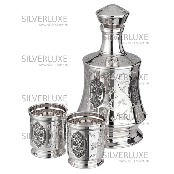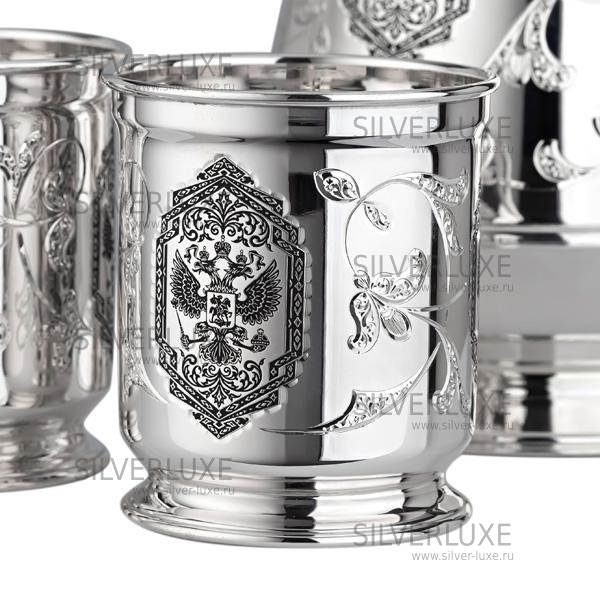 Серебро 875 пробы. В сервиз входят: чайник, сахарница, конфетница, вареньица, поднос, 6 пар чашек с блюдцем.