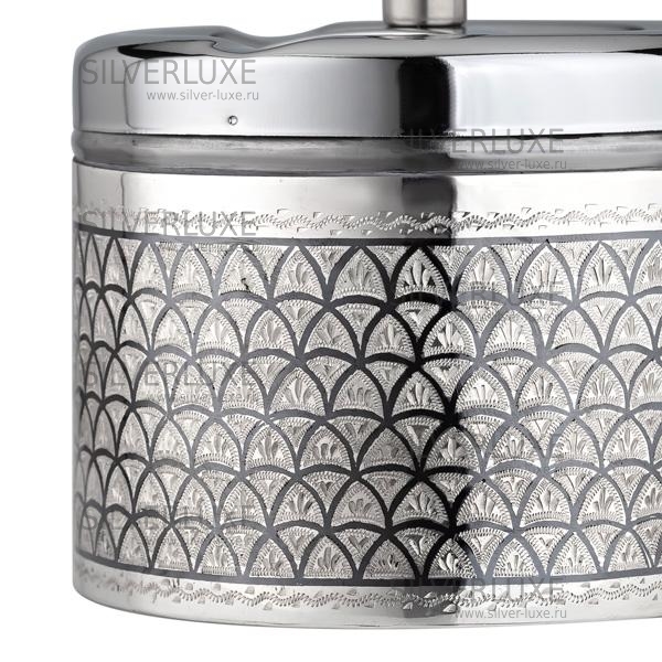 Корпус из серебра 875 пробы, механизм крышки нажимной, из стали. Крышка пепельницы имеет три углубления для сигарет и специальный поворотный механизм, при помощи которого пепел стряхивается в контейнер. Достаточно просто нажать на верх пепельницы и механизм сработает.Подарочная пепельница сувенир с нажимнымной очисткой позволит вам всегда иметь под рукой чистую и пустую пепельницу, а так же не дышать неприятным запахом от окурков и пепла. За счёт крутящегося механизма окурки и пепел бережно сбрасываются внутрь изделия, что избавляет помещение от мусора и неприятного табачного запаха.Легко чистится и моется. Плотное прилегание особой крышки гарантирует чистоту даже при опрокидывании пепельницы. Пепельница дымоуловитель будет оригинально смотреться в любом интерьере. Чтобы не портить здоровье некурящих людей, особенно детей и женщин, бездымная пепельница наилучший выход.