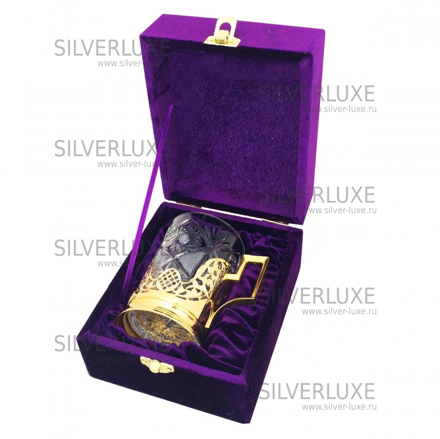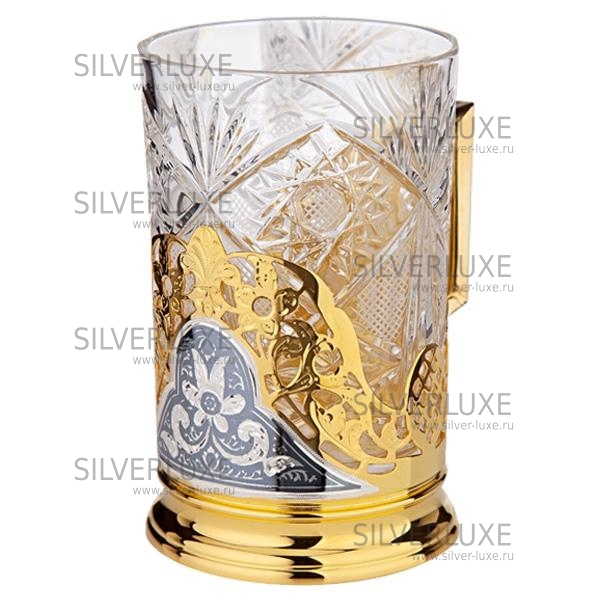 Серебро 875 пробы, покрыт золотом 999 пробы. Гарантия высшего качества! Стакан в комплекте.
