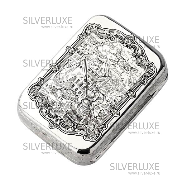 Серебро 875 пробы. Внутреняя часть состоит из трех отсеков, обработана флоком и покрыто лаком.