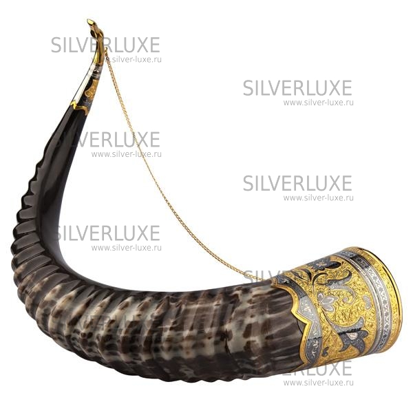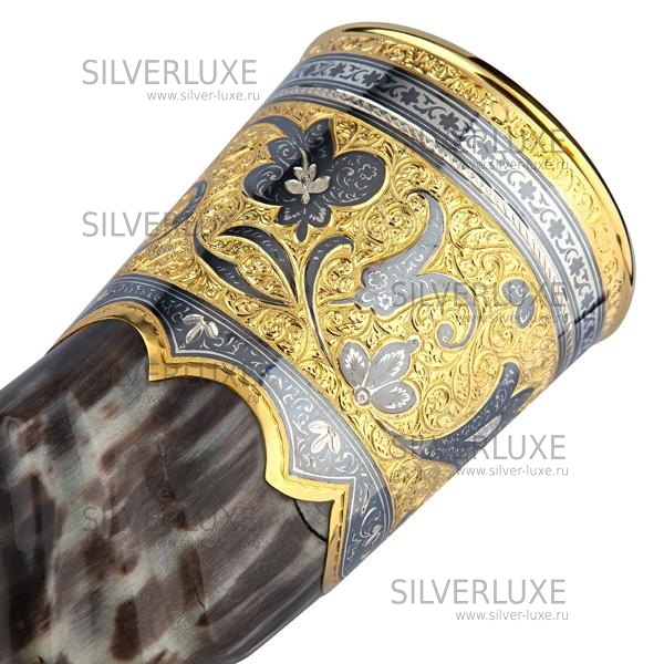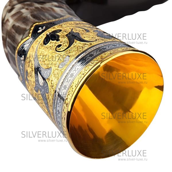 Серебро 875 пробы. Покрыт золотом 999 пробы. Рог с питьевой чашей.