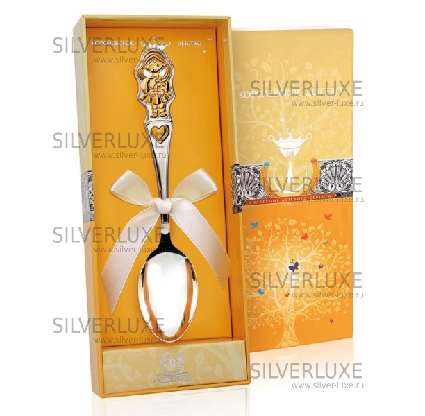 Серебро 925 пробы. Фабрика серебра "Аргента". Нанесенная позолота на серебряное изделие придает подарку блеск, изящество и благородство. Обладатель, получивший в подарок ложечку из серебра "Девочка" с позолотой, оценит презент и будет вспоминать дарителя при каждом его использовании.