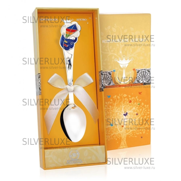 Серебро 925 пробы. Фабрика серебра "Аргента". С яркой эмалью. На рукоятке изображен мальчик с летающим бумажным змеем. Отличный подарок ребенку!