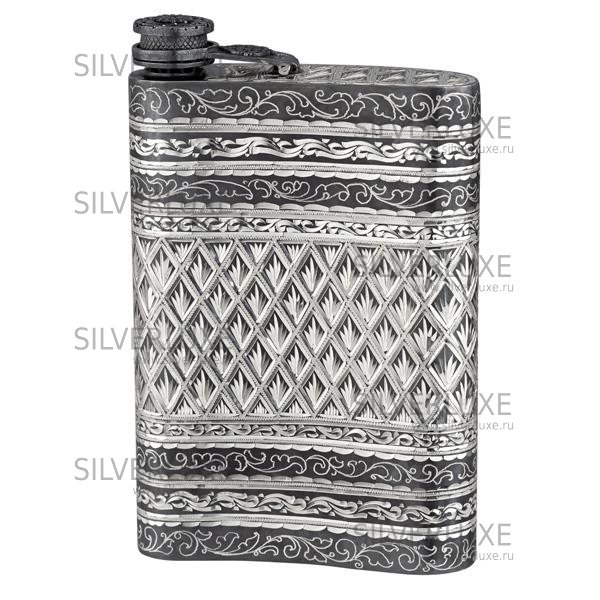 Серебро 925 пробы. Фляга без чернения. Выполнено вручную кубачинскими ювелирами.