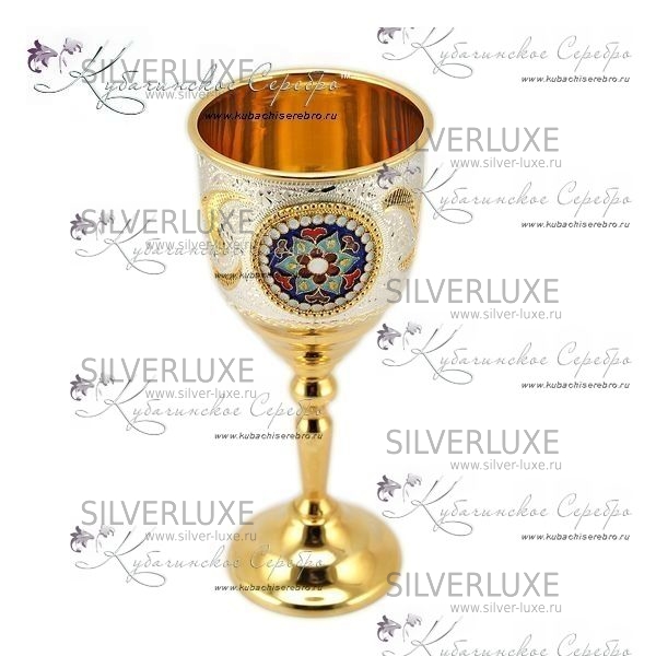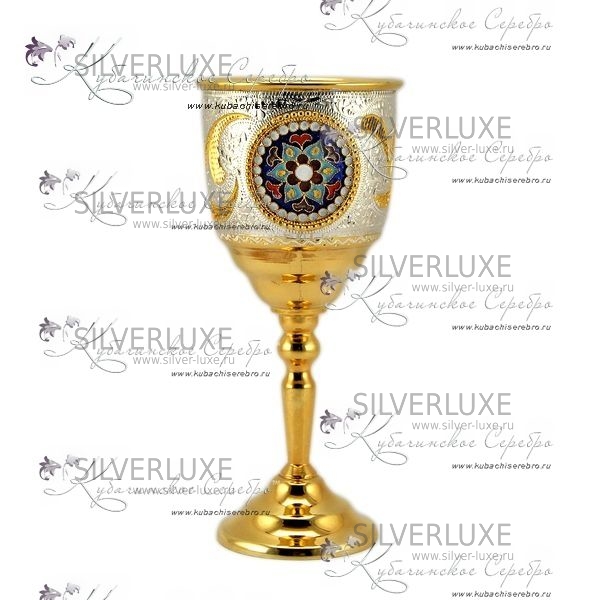 Серебро бокал 875 пробы. С позолотой 999 пробы и с применением горячей эмали!