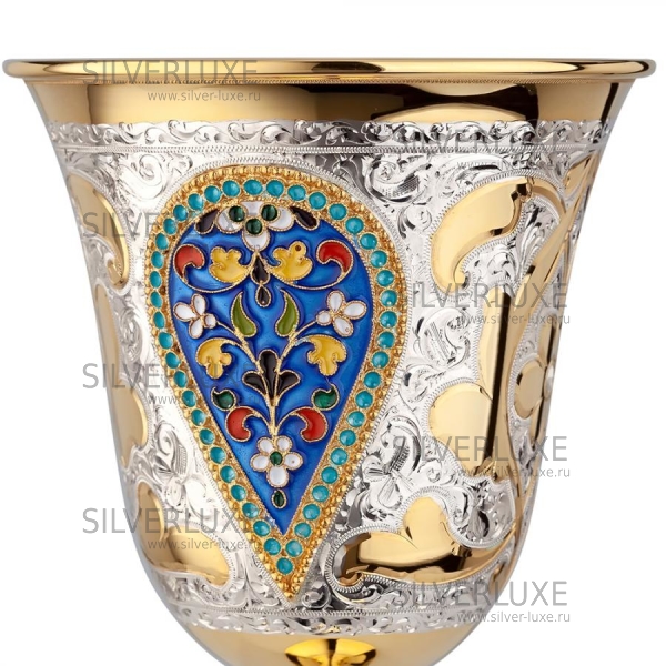 Серебро 875 пробы, покрыт золотом 999 пробы.