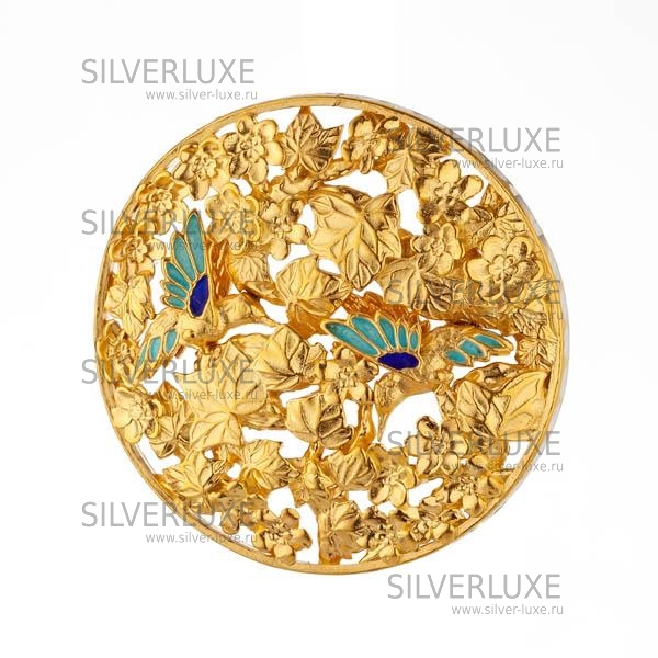 Серебро 925 пробы. Покрыт позолотой 999 пробы. С холодной эмалью. Изделие в фирменной подарочной упаковке.