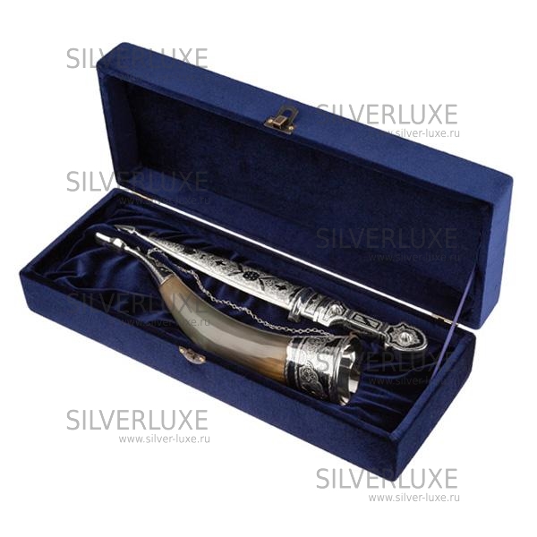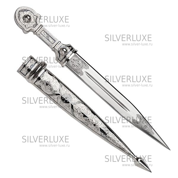 Серебро 875 пробы. Средний вес серебра в изделии 120 гр. Клинок - кизлярская сталь. Гарантия высшего качества от фирменного магазина!