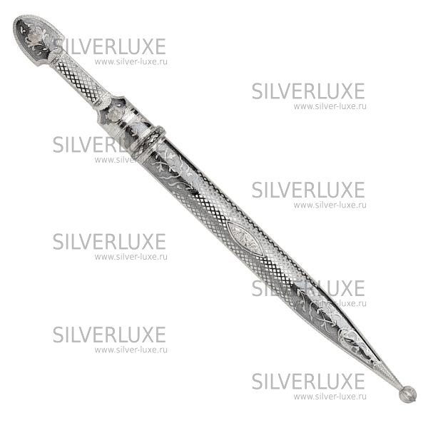 Серебро 875 пробы. Средний вес серебра в изделии 250 гр. Клинок - дамасская сталь! Гарантия высшего качества от фирменного магазина!