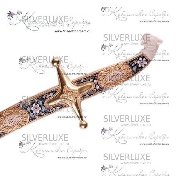 Серебро 875 пробы, покрыта золотом 999 пробы. Исполнение: позолота, эмаль и слоновая кость. Средний вес серебра в изделии 350 гр. Гарантия высшего качества! От фирменного магазина!