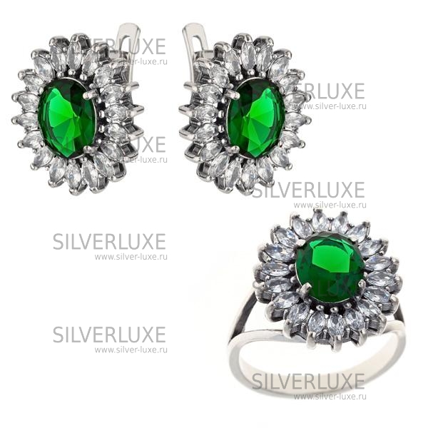 Комплект серебряный с зеленым камнем артикул: 8505/4