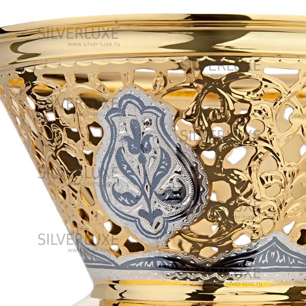 Серебро 875 пробы. Покрыта золотом 999 пробы.