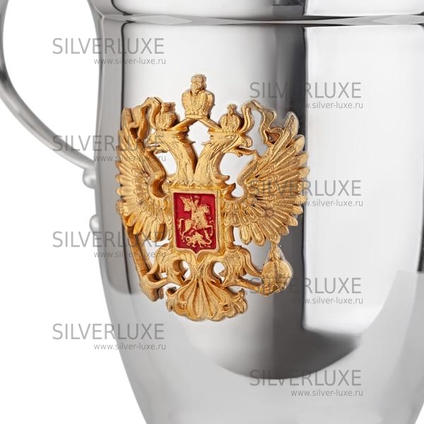 Серебро 999 пробы, герб с позолотой 999 пробы.