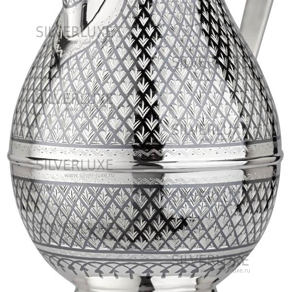 Серебро 875 пробы.Из кувшина вода вкусна и сохраняется намного дольше, чем в посуде, изготовленной из любого другого материала. Ученые и доктора утверждают, что питаться из серебряной посуды полезно. Серебро значительно повышает специфическую защитную функцию организма и помогает людям со слабым иммунитетом. Гарантия высшего качества от фирменного магазина!