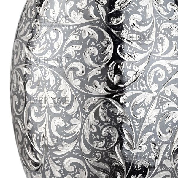 Серебро 925 пробы. Возможно нанесение подарочной надписи или любого рисунка. Крышка графина замковая, фиксируется при вращении.
