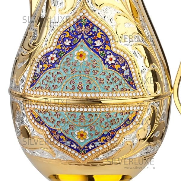 Серебро 875 пробы. Покрыт золотом 999 пробы. Кувшин для воды, сока. Гарантия высшего качества от фирменного магазина!